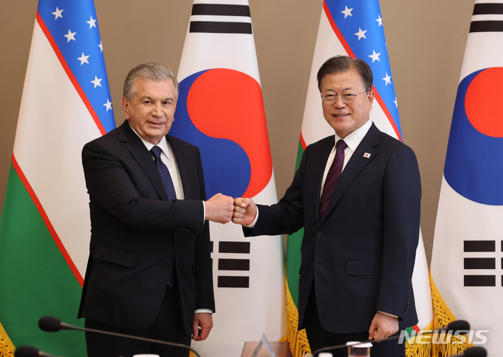 한편 두 정상은 이날 회담 결과를 담은 '한·우즈베키스탄 특별 전략적 동반자 관계' 심화를 위한 공동성명'을 채택했다. 또 양국 정부는 정상회담을 계기로 보건, 에너지, 스마트시티, 희소금속 등 협력에 관한 7건의 양해각서 등을 체결한다.