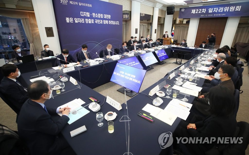 (서울=연합뉴스) 김도훈 기자 = 김용기 대통령직속일자리위원회 부위원장이 22일 오전 서울 중구 프레스센터에서 열린 제22차 일자리위원회 전체회의를 주재하고 있다. 2021.12.22 superdoo82@yna.co.kr