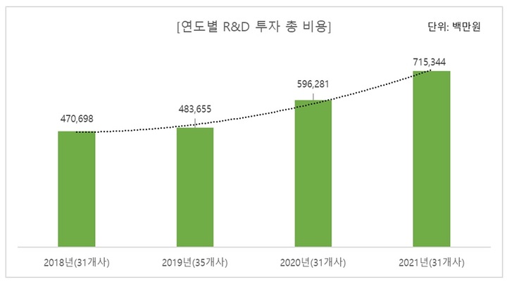 연도별 R&D 투자 총 비용 (사진=KRPIA 제공) *재판매 및 DB 금지