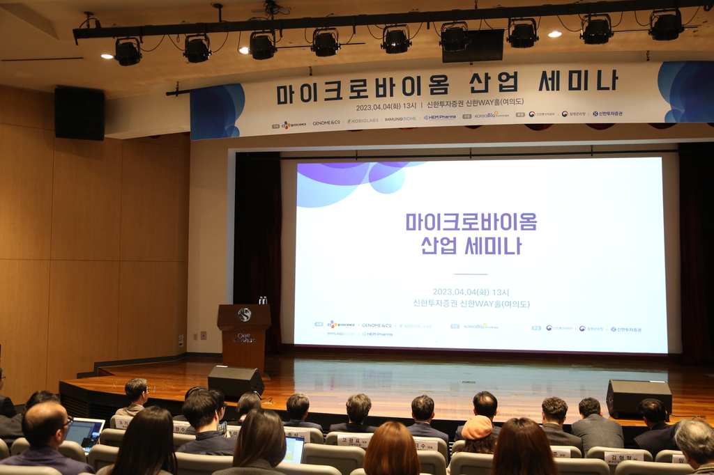 (서울=연합뉴스) 서울 여의도 신한투자증권 신한WAY홀에서 4일 한국바이오협회가 주관한 '마이크로바이오 산업 세미나'가 열리고 있다. 2023.4.4 [한국바이오협회 제공. 재판매 및 DB 금지]