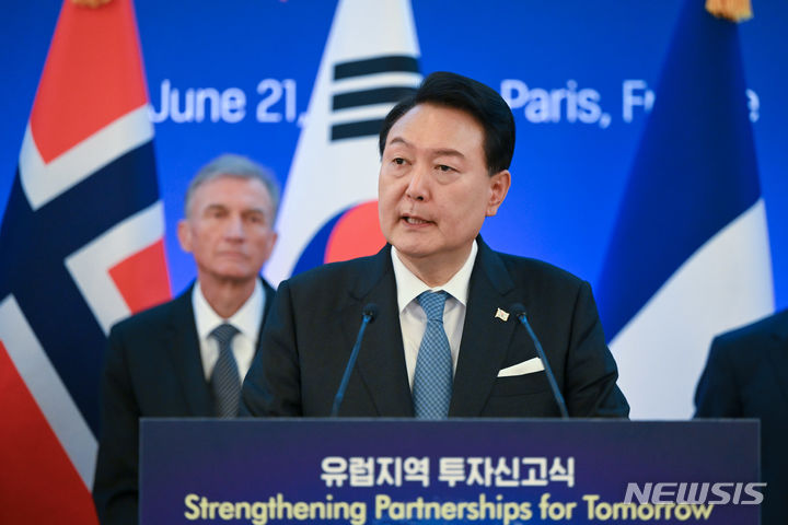 [파리=뉴시스] 박미영 기자 = 윤석열 대통령은 21일(현지시간) 프랑스 순방 계기로 '유럽지역 투자신고식'에 참석해 유럽 대표 첨단분야 기업으로 부터 9억4000억 달러(약 1조 2000억원)의 투자를 이끌어냈다.