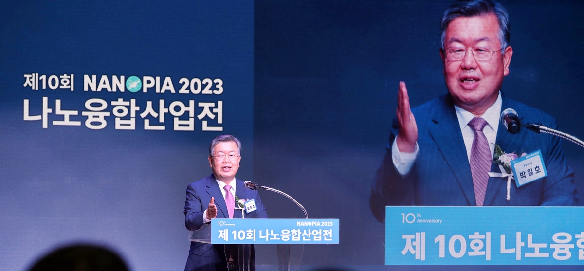 (밀양=연합뉴스) 이정훈 기자 = 국내 유일 나노산업 특화 국가산업단지가 있는 경남 밀양시에서 나노융합산업전(나노피아 2023)이 21일 개막했다.