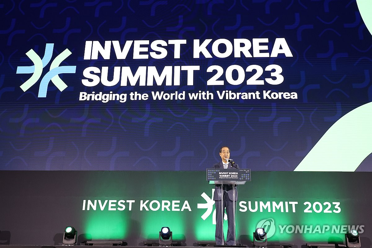 (부산=연합뉴스) 황광모 기자 = 한덕수 국무총리가 지난해 11월 7일 오후 부산 해운대구 벡스코에서 열린 '인베스트 코리아 서밋' 2023, 인베스트 콘퍼런스에 참석해 축사하고 있다. 2023.11.7 hkmpooh@yna.co.kr