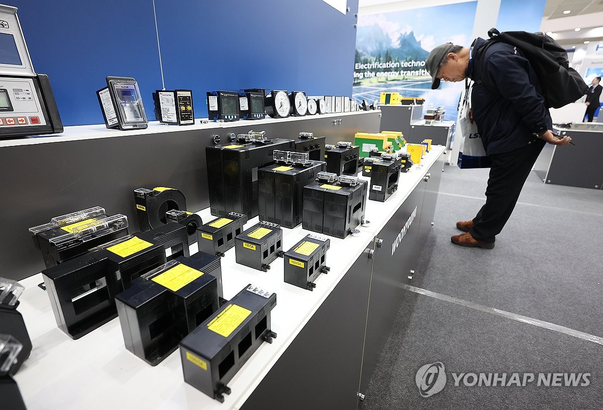 (서울=연합뉴스) 김성민 기자 = 3일 오후 서울 강남구 코엑스에서 열린 '코리아스마트그리드엑스포 2024'에서 한 관람객이 저압수배전기기를 둘러보고 있다. 2024.4.3 ksm7976@yna.co.kr