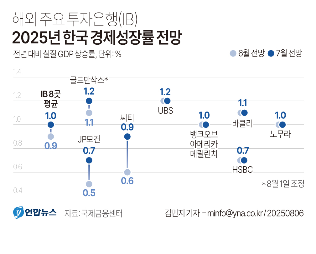 [그래픽] 해외 주요 투자은행(IB) 2025년 한국 경제성장률 전망