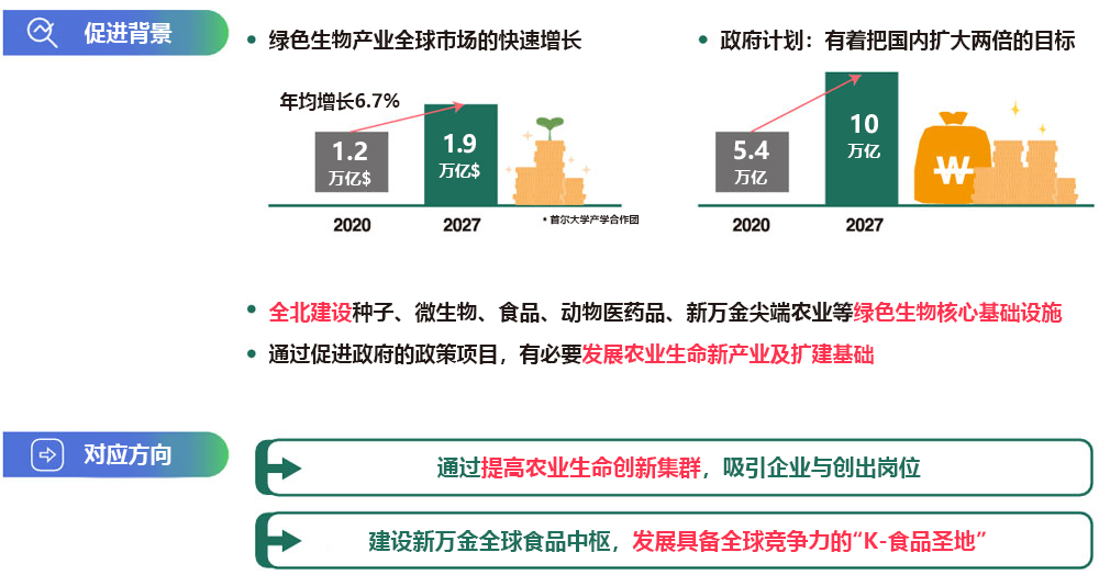 “农业生命产业首都”是集中生产、加工、流通、研发等农业生命资源,并通过持续创新,领导高附加价值农业生命产业的地区。