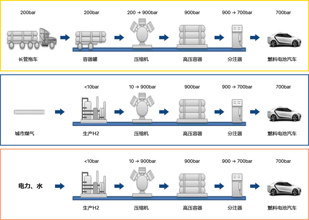 - (输气管)这是通过直接管道将氢气从生产地供应到需求地的方式,使用的是与城市燃气类似的低压气体氢气。