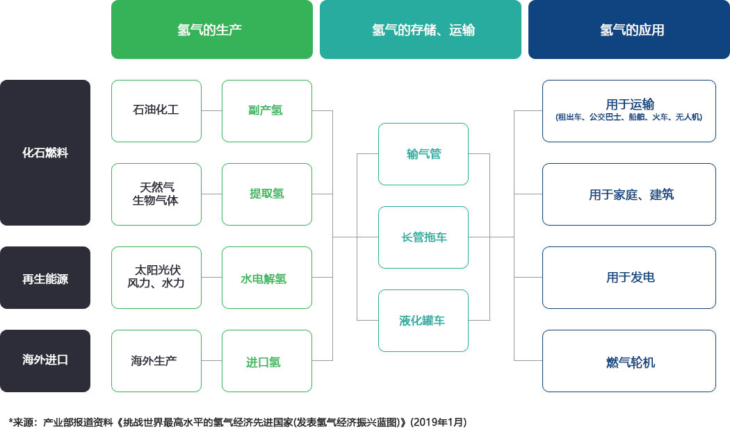 这是将氢气作为能源使用的阶段,目前主要应用于运输、建筑物和发电领域。